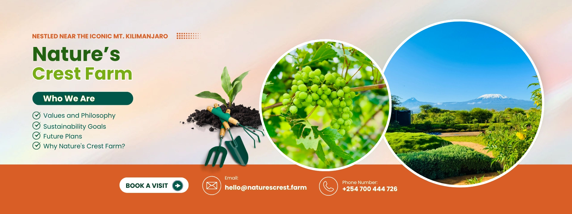 Nature’s Crest Farm is a serene, eco-focused retreat nestled near the iconic Mt. Kilimanjaro. Our farm is a sanctuary designed for guests to reconnect with nature, immerse themselves in sustainable practices, and find rejuvenation away from the hustle and bustle of city life.